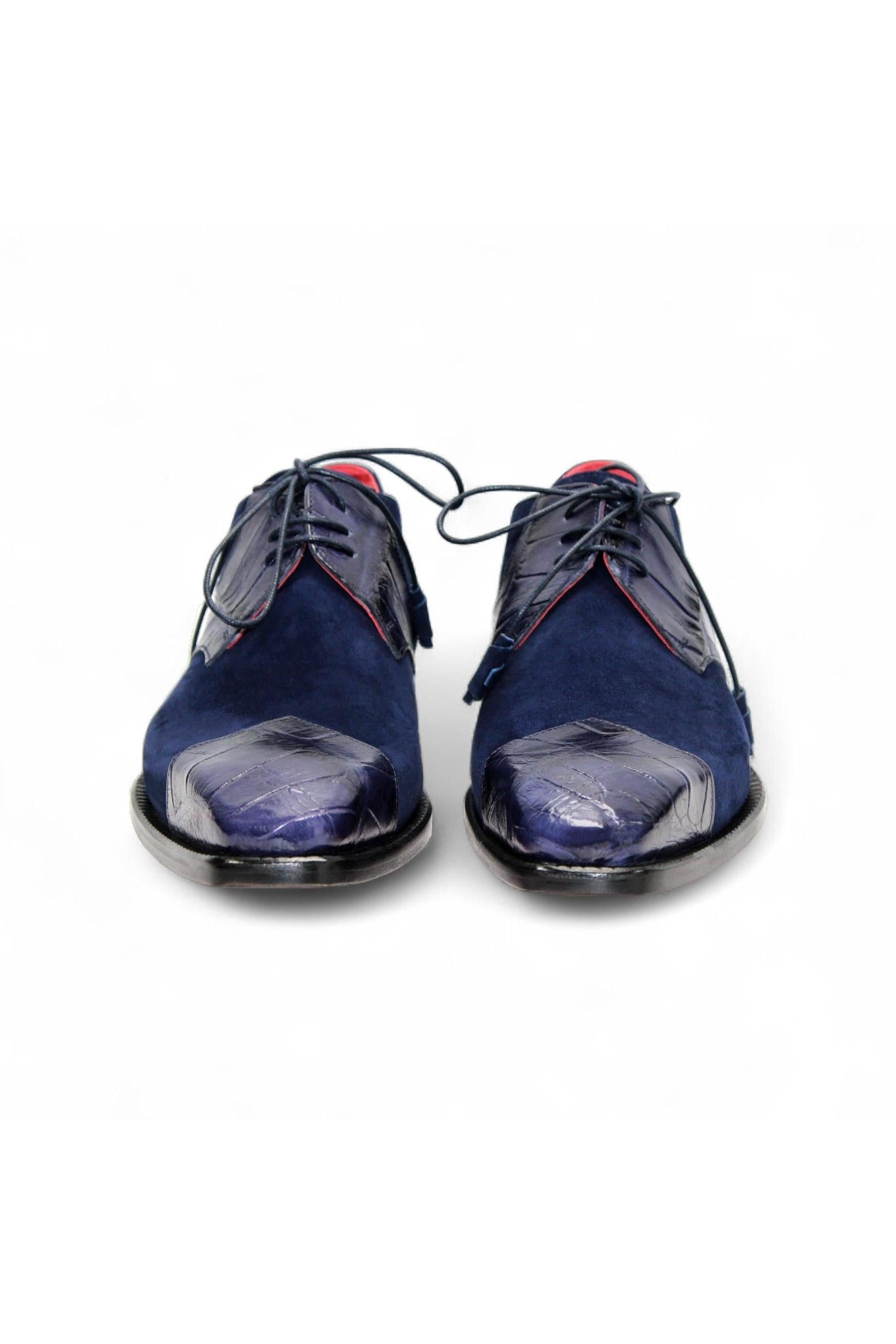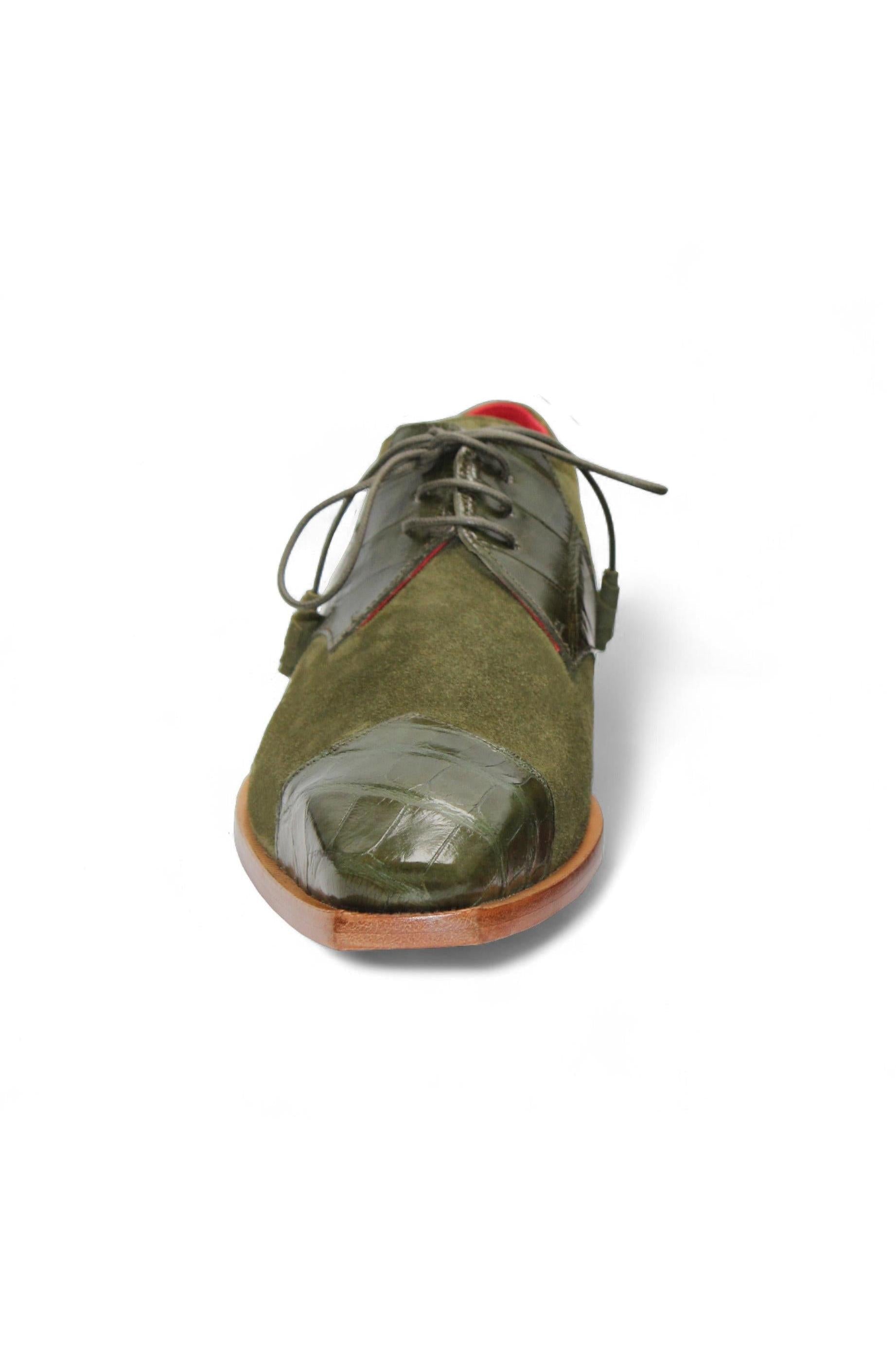 Fennix Landon Alligator Skin & Suede Derby (FX1032) blends Italian craftsmanship with premium materials. Made from genuine alligator skin and soft suede, this men's derby offers a unique texture and lasting durability. Its classic silhouette features precise detailing for a refined look.